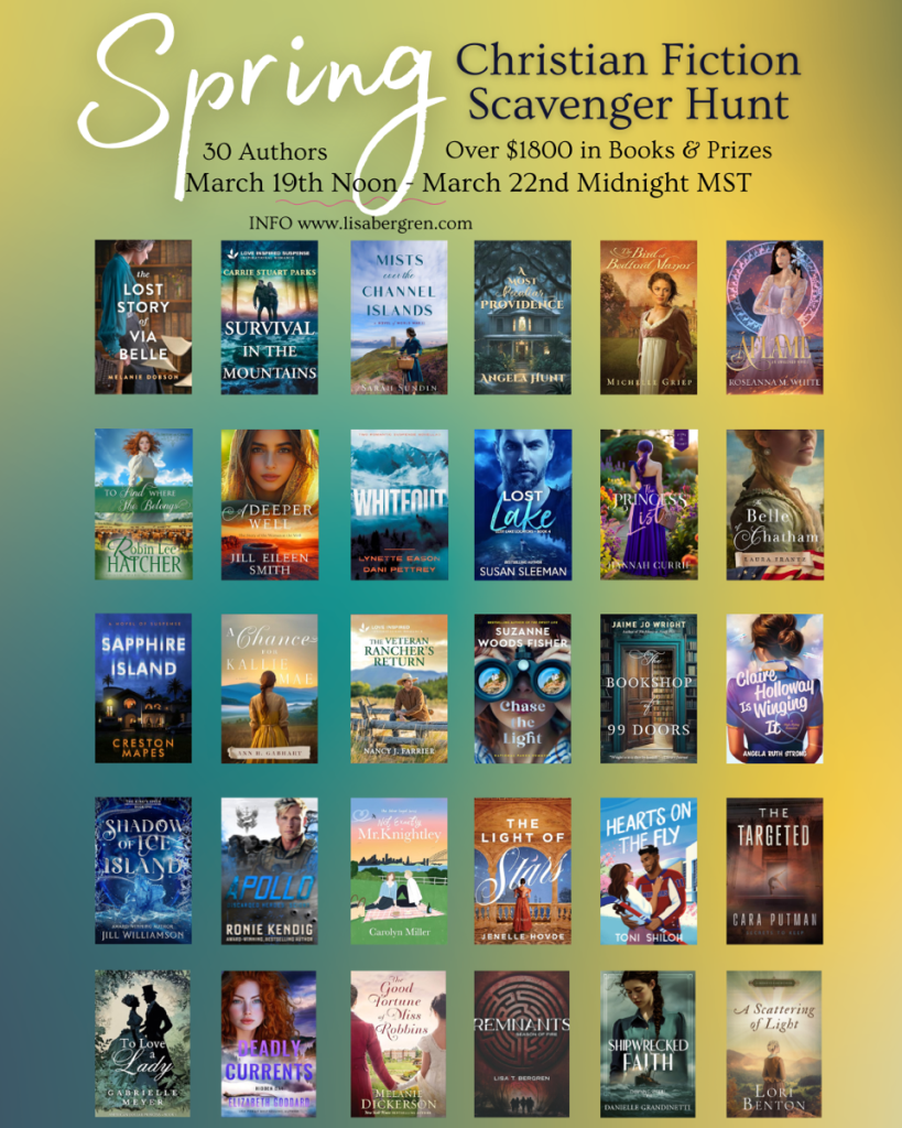 Welcome to the Christian Fiction Scavenger Hunt! If you’ve just discovered the hunt, be sure to start at Stop #1, and collect the clues through all the stops, in order, so you can enter to win one of our top 5 grand prizes!